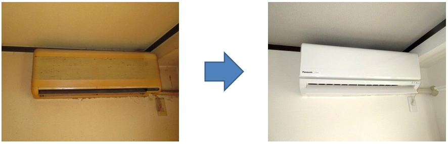 生活に欠かせないエアコンも新品へと交換してます!!