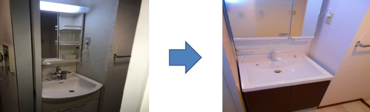暗めの洗面化粧台から明るく綺麗になりました☆