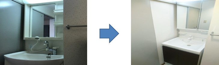 洗面化粧台も一式交換しております!