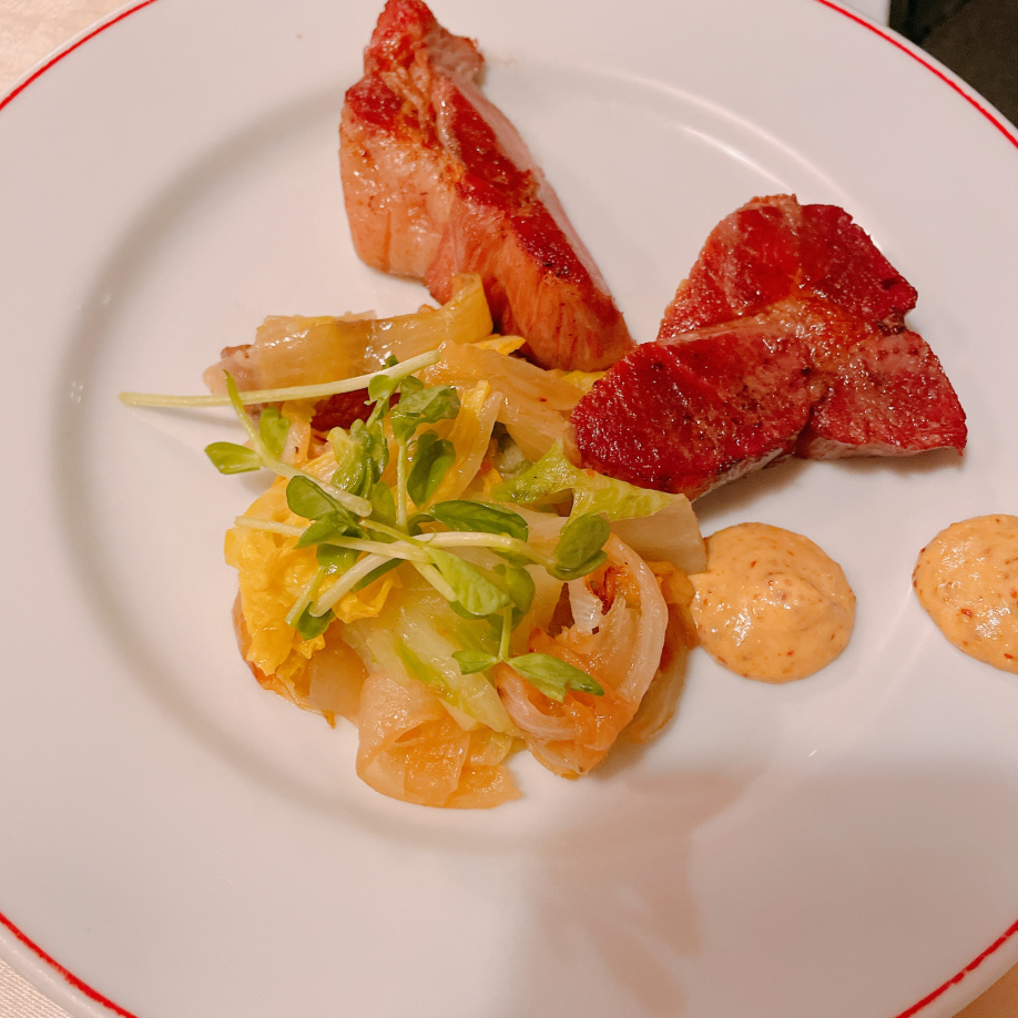 メインに牛ササミのステーキ